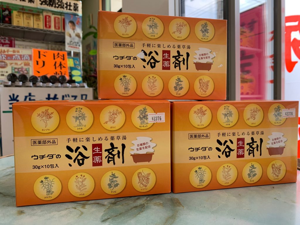 2019年7月1日 / 最終更新日 : 2019年6月6日 kyouya お知らせ 冷房による冷えなどに生薬の入浴剤が効果的です 天然の生薬のみで出来たウチダの生薬浴剤がお勧めです。生薬のとてもいい香りがして、とても癒されます。 とっても温まるので冷え性の方は夏場でもおすすめです!また、お肌もしっとり潤うので、冷房による肌の渇きにも好評です。 ウチダ漢方入浴剤